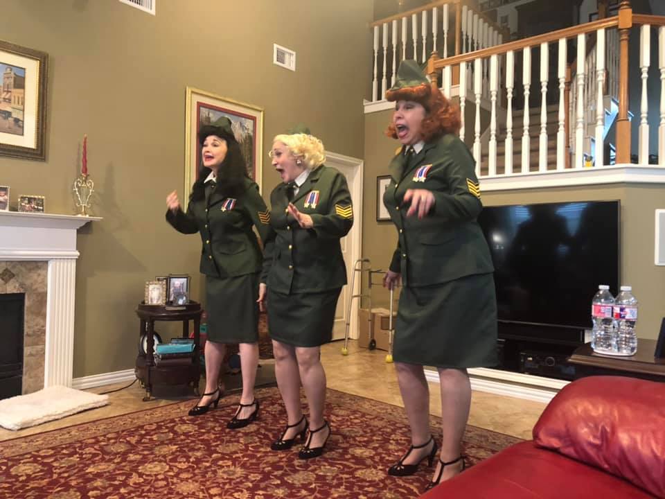 Last year, the ‘Andrew Sisters’ got to perform again for our church’s Sweetheart Banquet. Because of illness, Paul and his precious wife, Joyce, were unable to attend. So the Andrew Sisters went to them and performed “Boogie Woogie Bugle Boy” in their home. It not only brought a smile to Paul’s face but it lightened up our day as well, while we hammed it up and sang (or rather lip-synced) our hearts out!
