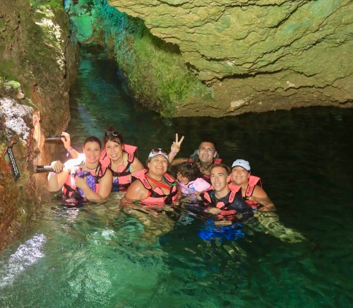 The next morning, my daughter and I hopped on a shuttle bus. For part of the day, we joined a coworker and his family. They were also vacationing in Cancun at another resort. We enjoyed an outing at Riviera Maya to experience Xcaret’s natural waterpark. We put on lifejackets and jumped into the cold underground river. We paddled along with our arms and feet. It was such an accelerating experience!