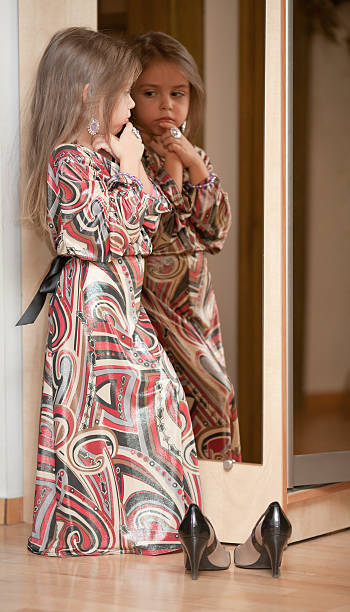 When she looks in the mirror, what does she see?